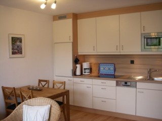 Unsere 50 m2 große komfortable allergenarme Ferienwohnung für 1-4 Personen mit freiem W-LAN befindet sich im Erdgeschoss des Hauses Uns Huus. Das Haus liegt in einer ruhigen, dennoch zentral- und strandnahen Nebenstraße. Vom Bahnhof sind es nur wenige Meter Fußweg. Uns Huus ist von einem Garten umgeben, in dem Schaukeln den Kindern hinter dem Haus zur Verfügung stehen.Die Ferienwohnung "Sonnenschein" ist durch ihre südliche Lage sehr hell und sonnendurchflutet. Das große Wohnzimmer mit dem gemütlichen Sofabereich ist durch eine Fensterfront zur ebenerdigen südlich gelegenen, nicht einsehbaren, überdachten und windgeschützten Holzterrasse verbunden. Bequeme Gartenmöbel, sowie die Gartennutzung, ermöglichen einen "Draußenaufenthalt" vom Frühstück bis in die Abendstunden. Eine gut sortierte Küchenzeile mit Essbereich lädt zum Kochen und Relaxen ein. Von den zwei Schlafzimmern ist eines mit einem Doppelbett und das andere mit einem Doppelstockbett ausgestattet. Das Badezimmer ist nach den neuesten Standards eingerichtet und hat beispielsweise eine leicht begehbare und geräumige Dusche.
